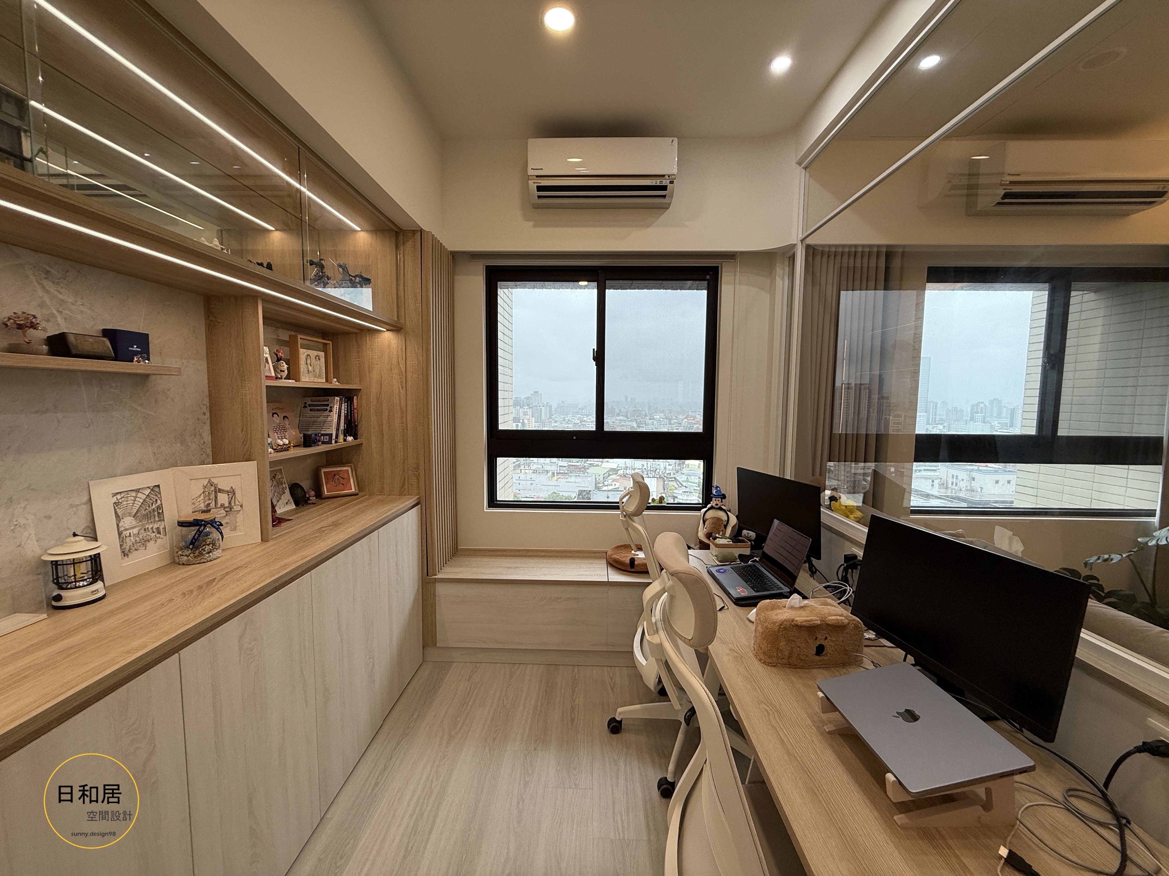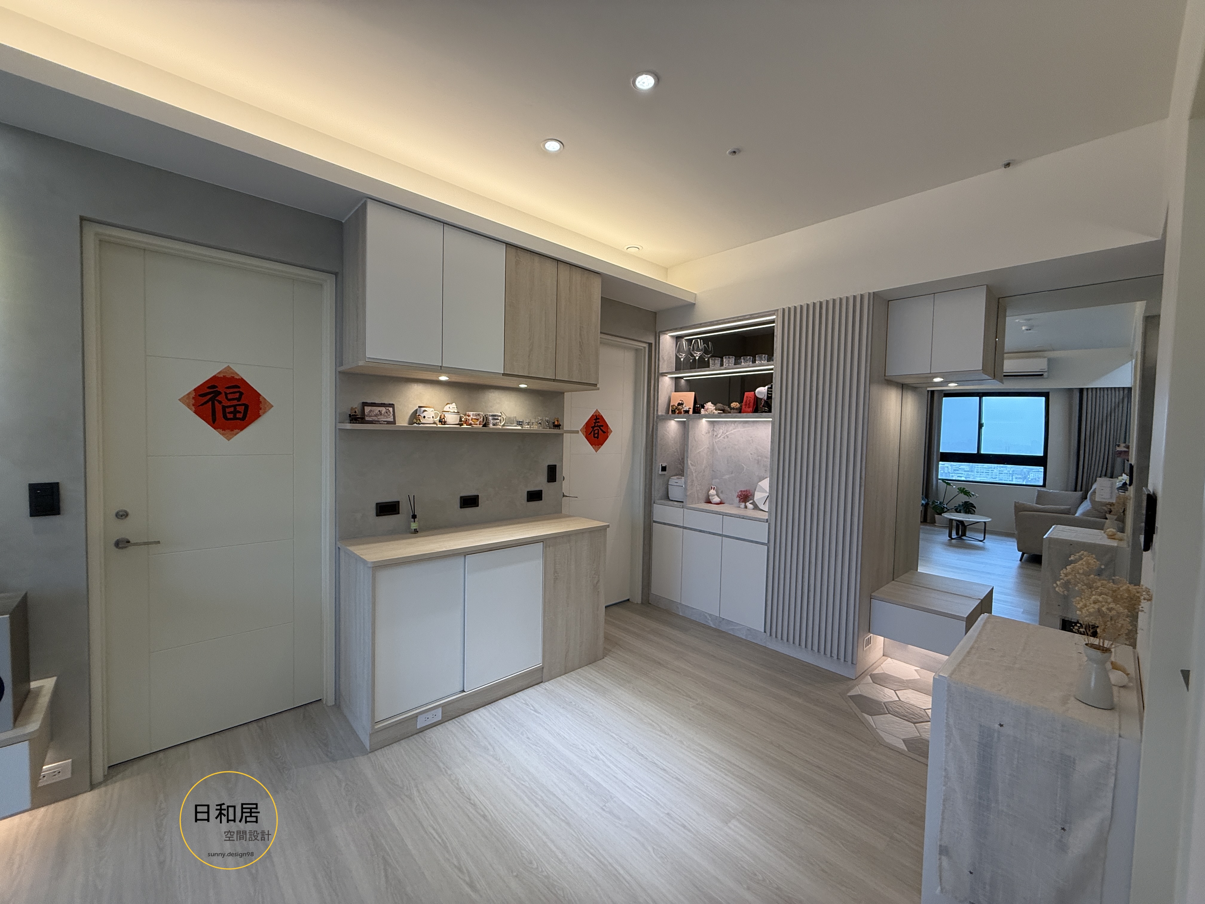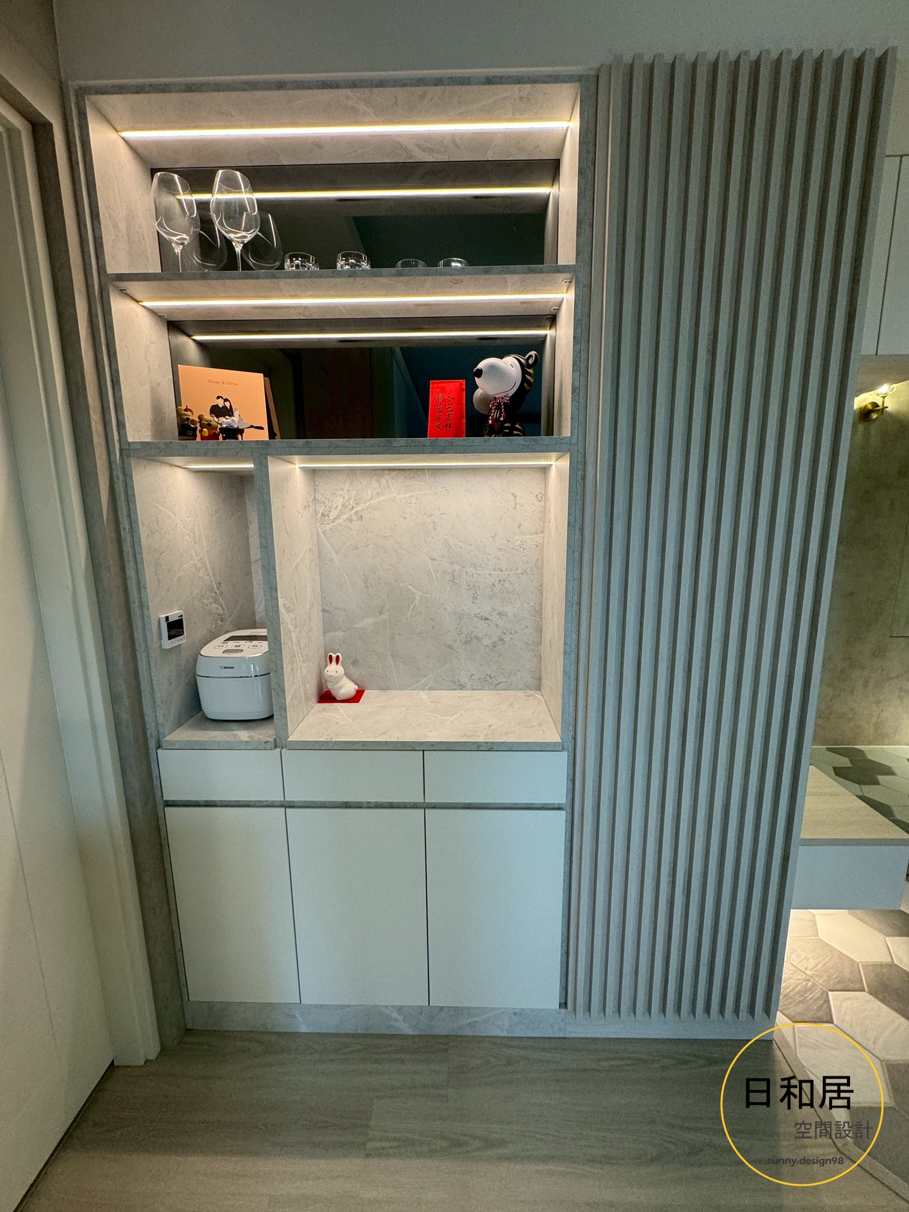 本案件是位男工程師理想中的小宅婚房,與伴侶一起討論空間設計,實現了樂高回憶的收藏;一格格展示櫃,留入對生活的想像和空間。心思細膩的屋主們,用材選料皆經層層篩選,呈現恰如其分的質感與講究,空間主調以奶茶風格的淺木紋色系及莫蘭迪灰色調為主,搭配局部的大理石紋及灰鏡點綴,呈現剛剛好的低調奢華。